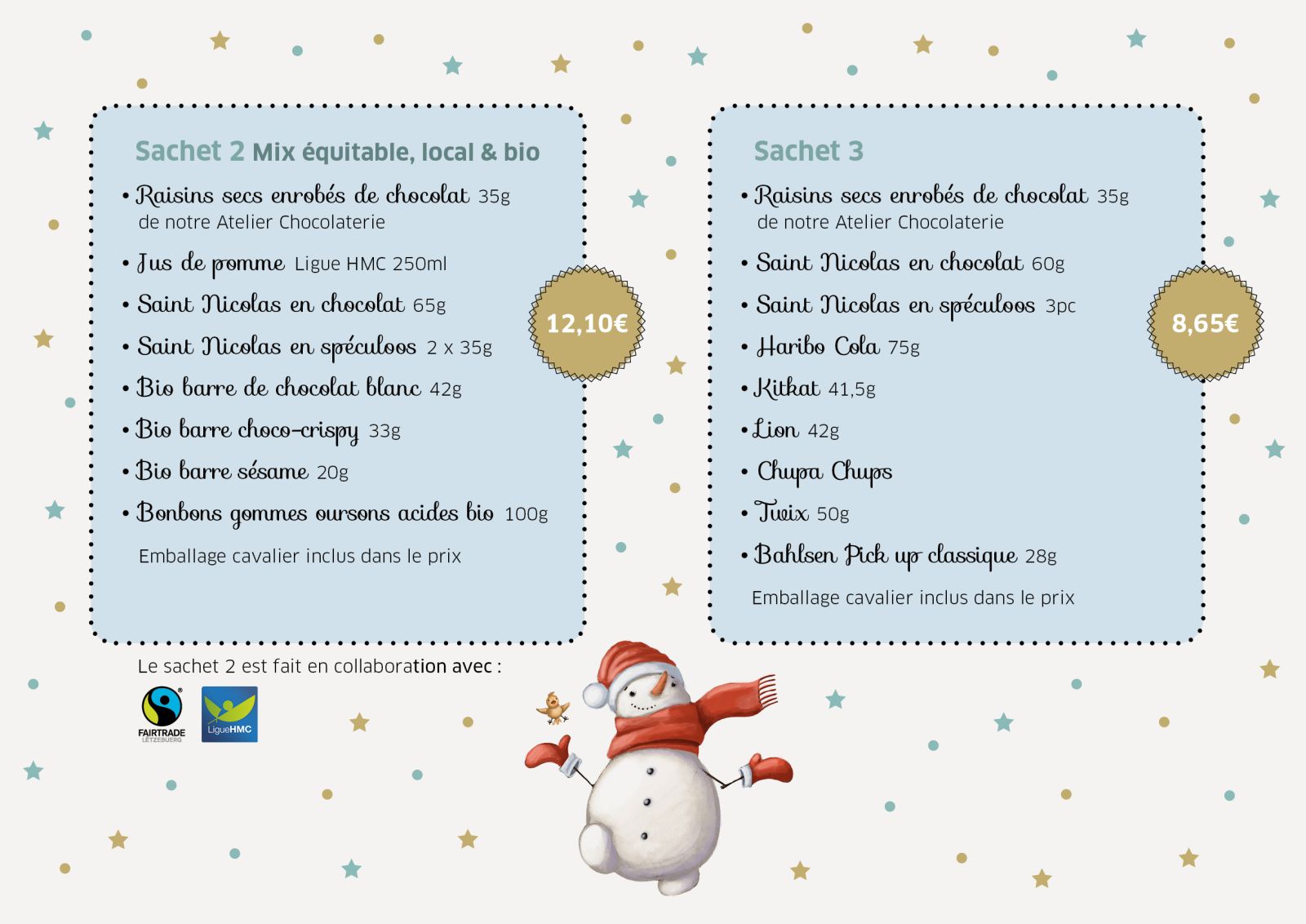 L'atelier « services » vous propose à nouveau cette année des sachets de Saint-Nicolas équitables et classiques: