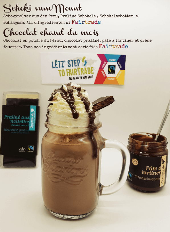 Action 1: Le Bar à chocolat à Walferdange vous propose pour le mois de mai un chocolat chaud tout Fairtrade