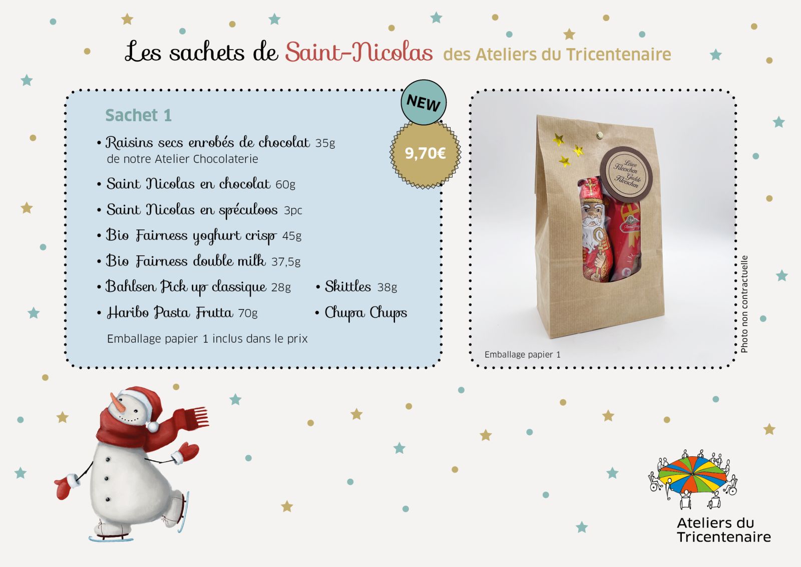 L'atelier « services » vous propose à nouveau cette année des sachets de Saint-Nicolas équitables et classiques: